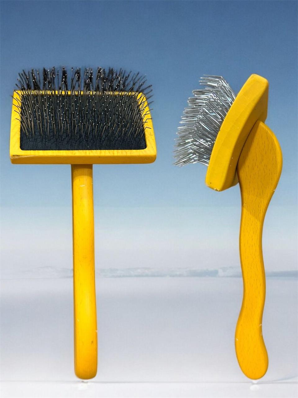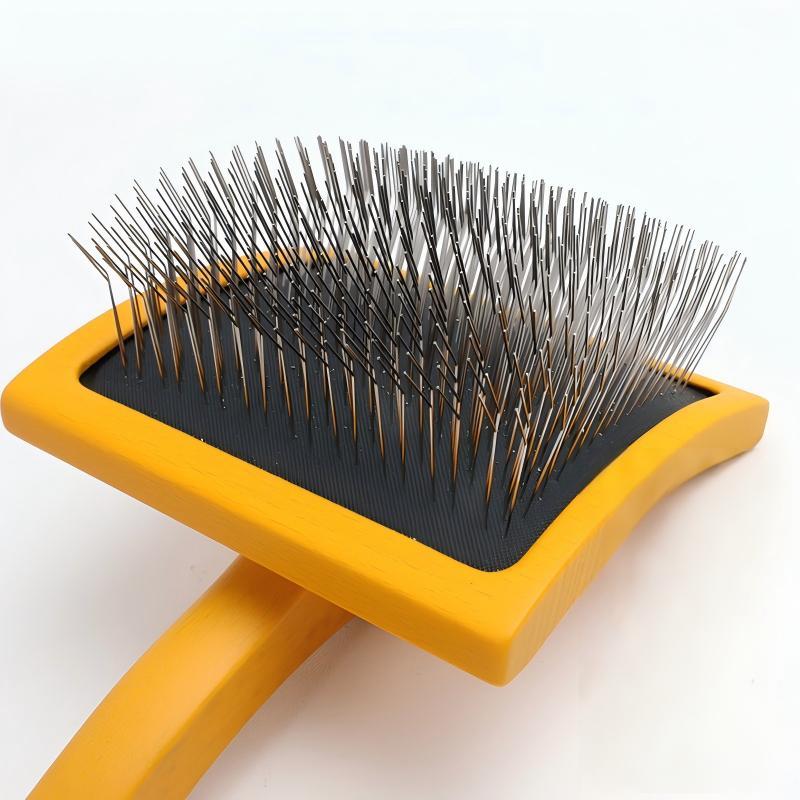 Pet Professional Dog Slicker Brush is made for professional groomers and pet owners alike. The large pins won't scratch your pet but will grab tangles and knots resulting in a smooth de-tangled coat.